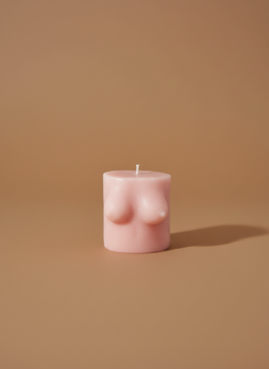 Håndlavet stearinlys med big boobs fra Noboobie Is Perfect.