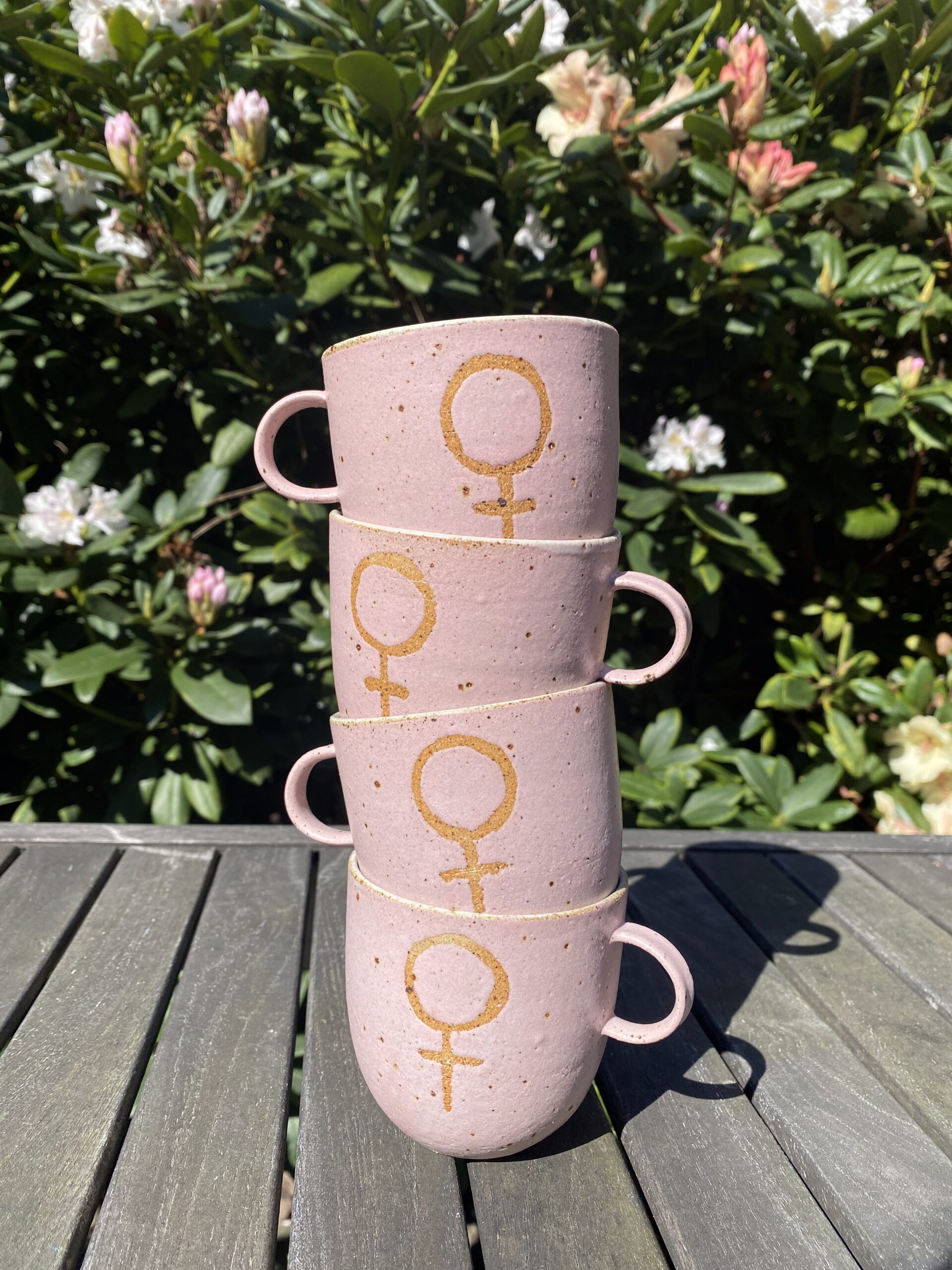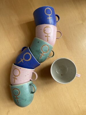Hver enkel kop er hånddrejet af Anna på hendes værksted, og markeret med et kvindesymbol.